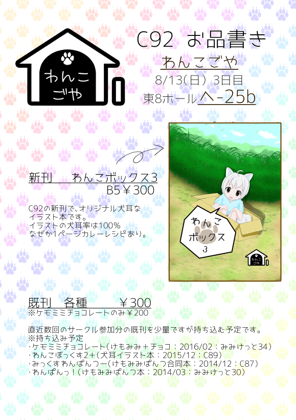 コミックマーケット92(2017/8/13(日) 3日目)東8ホール へ-25b「わんこごや」にて。