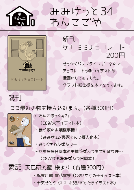 合わせて、みみけっと34のバレンタインネタの既刊『ケモミミチョコレート』も持ち込みます。